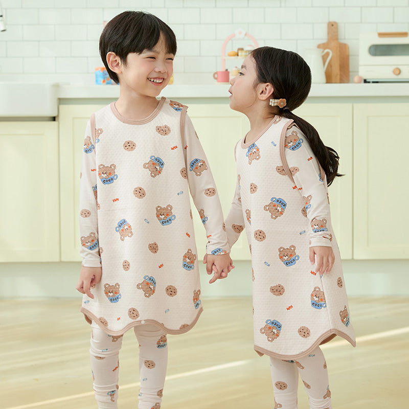 Kids Triple-Layer Quilted Long Sleeping Vest - Cookie Bear