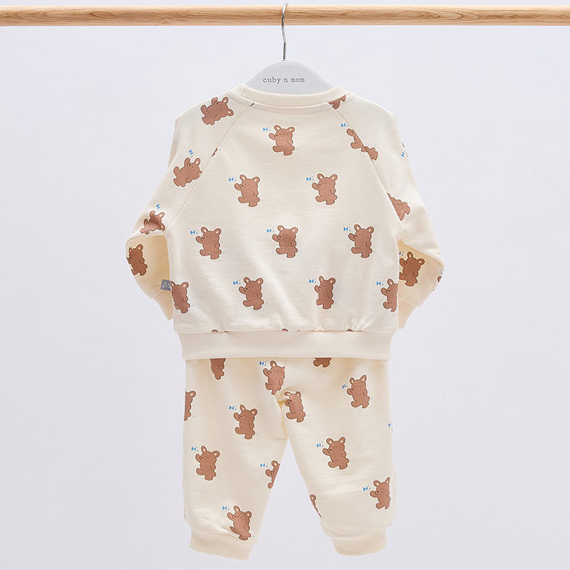 Korean Baby Top & Bottom Loungewear Set-Hi Brown