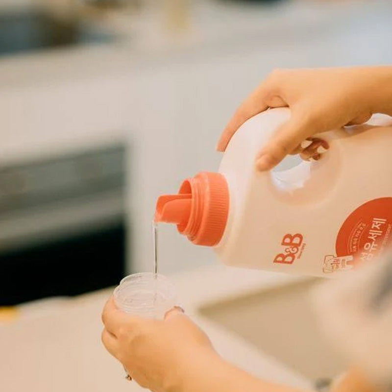 - Pour B&B Fabric Detergent into cap following dosage instruction. For best results, soak for 30minutes before starting the washing machine.