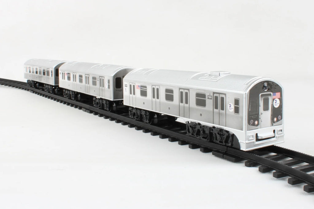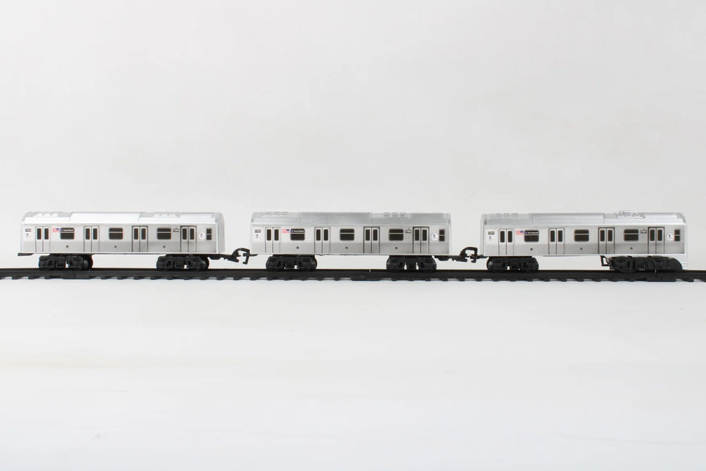 This train set comes with 3 NYC MTA Trains and 16 Pieces of tracks. Fully functional lights and sounds make this train set realistic and fun! All MTA logos and marks are certified by the Metropolitan Transportation Authority. Batteries are not included. Requires 3 AA batteries. Recommended for children Ages 3+.