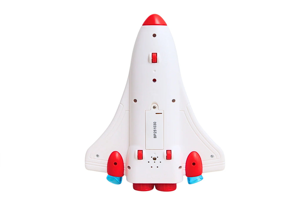 Kids can blast off to adventure with this space-themed playset that rockets them into a world of wonder and discovery! This plastic set comes complete with a space shuttle, hovercraft, space buggy, and astronaut figures. The set is loaded with special features, including lights and sounds that activate at the push of a button on both the space shuttle and space pod, windshield domes that can be opened so figures can sit inside the shuttle and pod, and an extendable mechanical arm inside the shuttle which can attach to a figure. Spin the astronaut around and imagine he is exploring and discovering the galaxy around him! Sounds include take-off effects for the shuttle, and an alarm for the space pod. The bay doors on the side of the shuttle open, and the space buggy features a storage box in back which can also be opened. All spacecraft and vehicles are freewheeling. Kids can roll the space buggy along for any adventures they can imagine! Adding to the fun and authenticity are licensed NASA logos and the American Flag adorning the pieces. Aproximately 9.5 inches x 7.5 inches, plastic. 2 X 1.5 AAA Alkaline Batteries are included. Recommended for children Ages 3+.