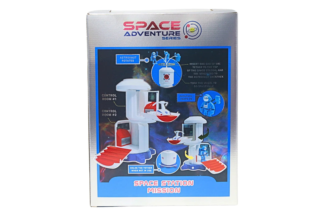 Daron SPACE ADVENTURE SPACE STATION W/FIGURE, SPACE ROVER & LIGHT Kids can blast off to adventure with this space-themed playset that rockets them into a world of wonder and discovery! This plastic set comes complete with a space station with a capsule featuring two compartments, a free-wheeling space rover vehicle,...