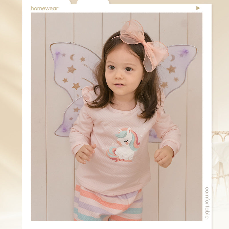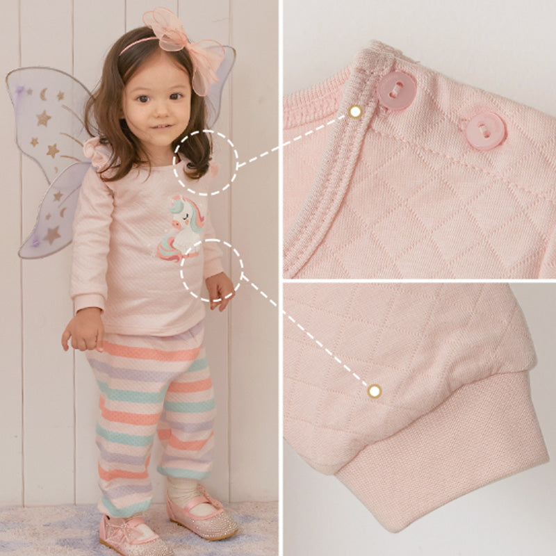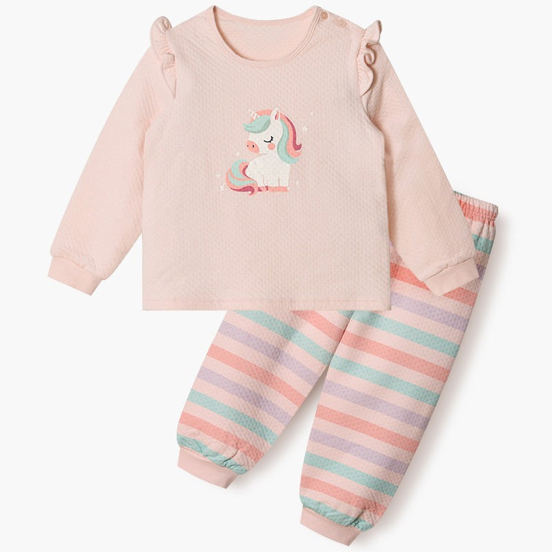 Korean Kids Thermal Pajamas Set-Pink Corn